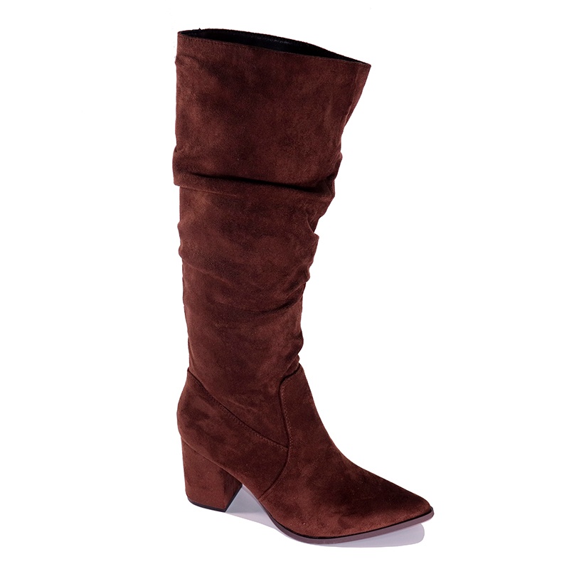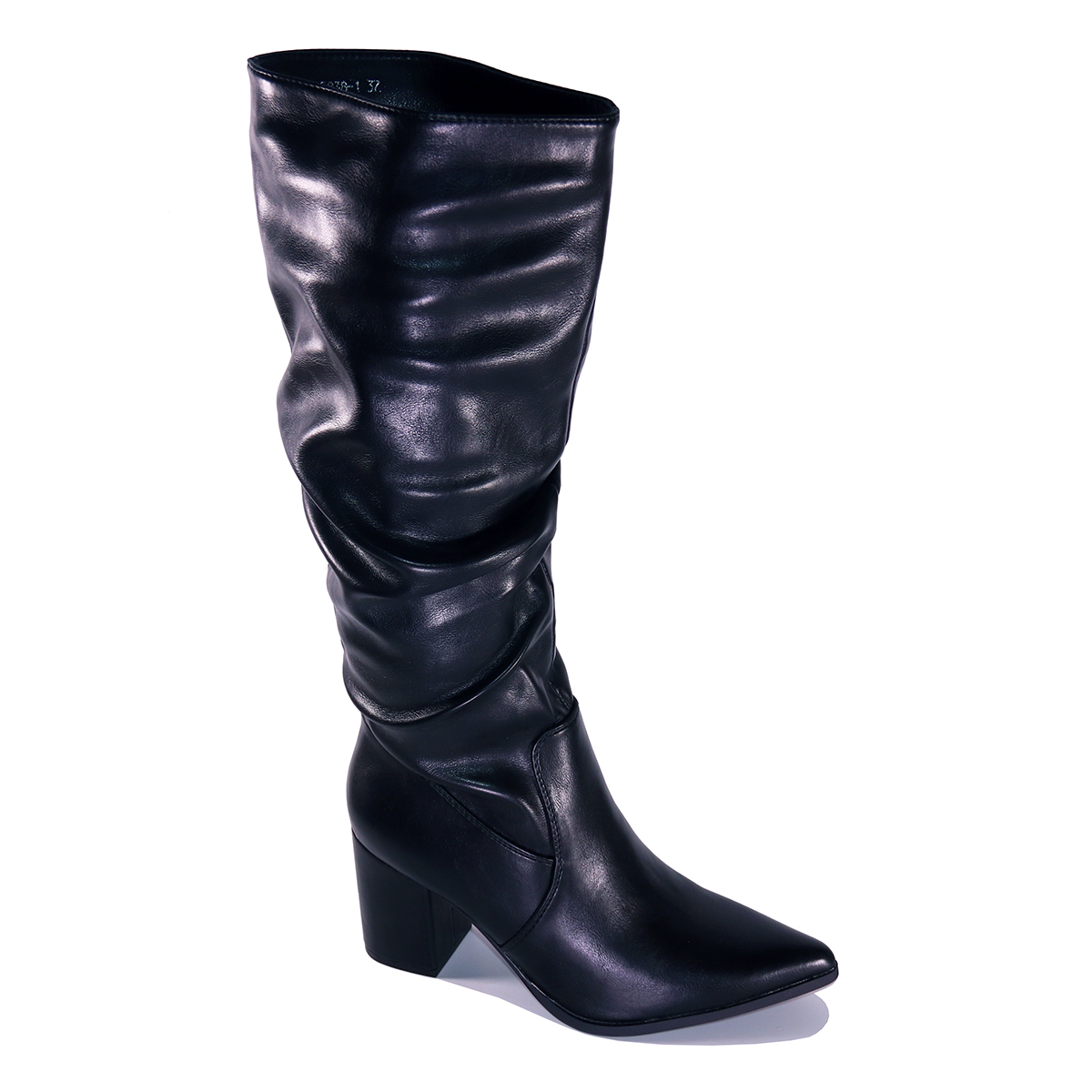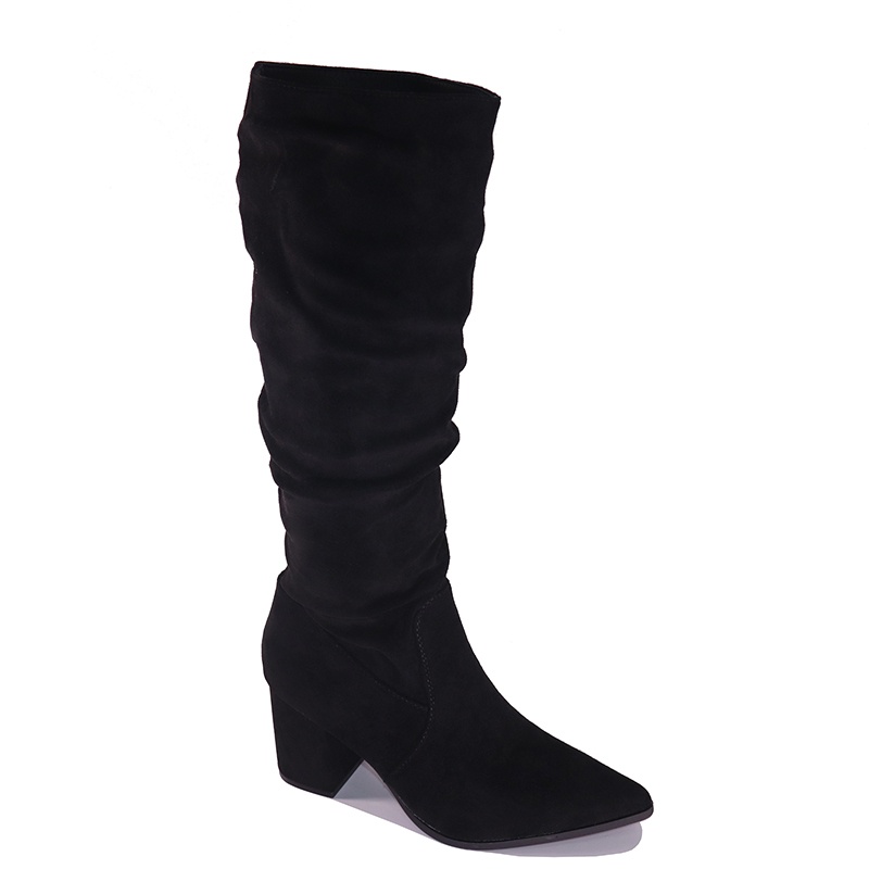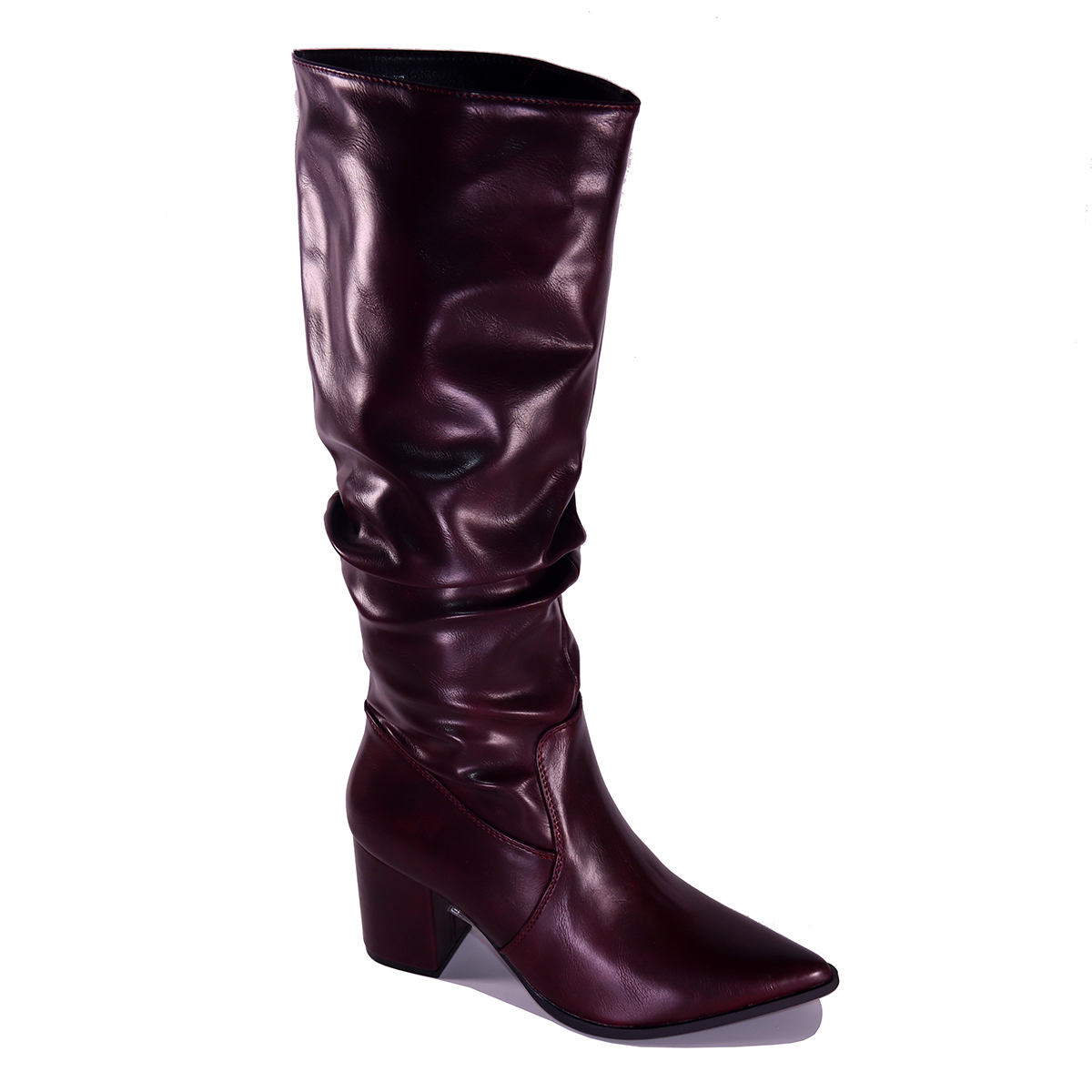 Affirmez votre style avec cette botte haute plissée à talon bloc, un modèle qui conjugue élégance et confort.