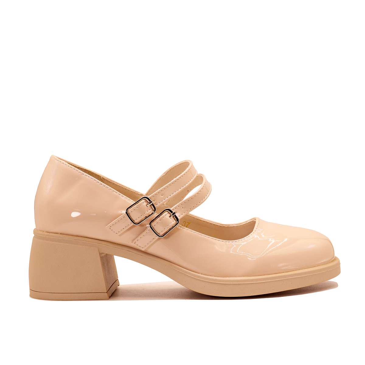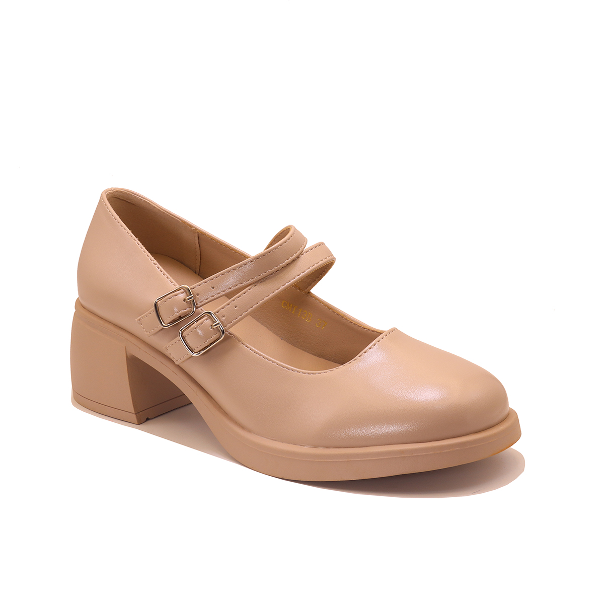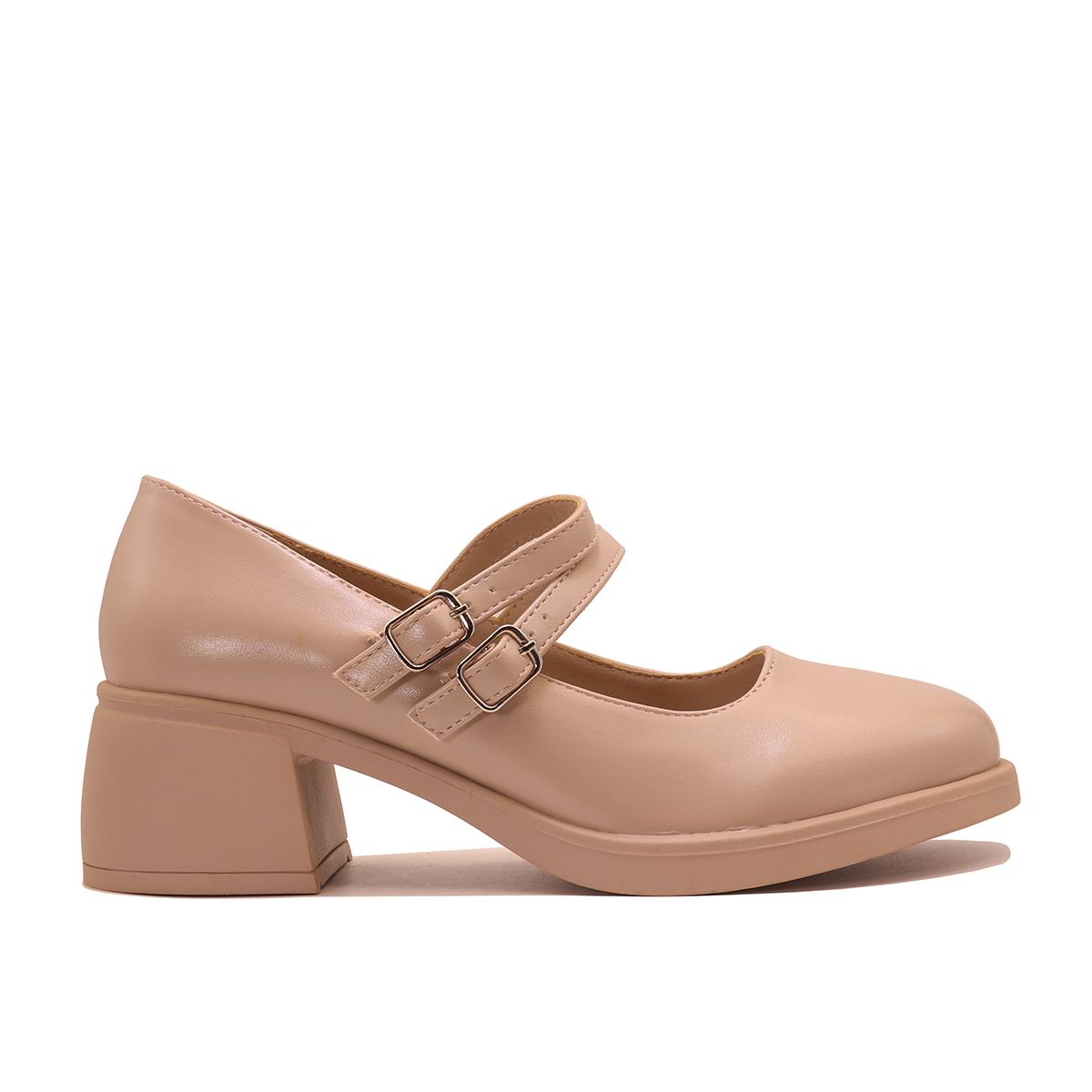 Escarpin à bride avec talon épais et boucle décorative dorée