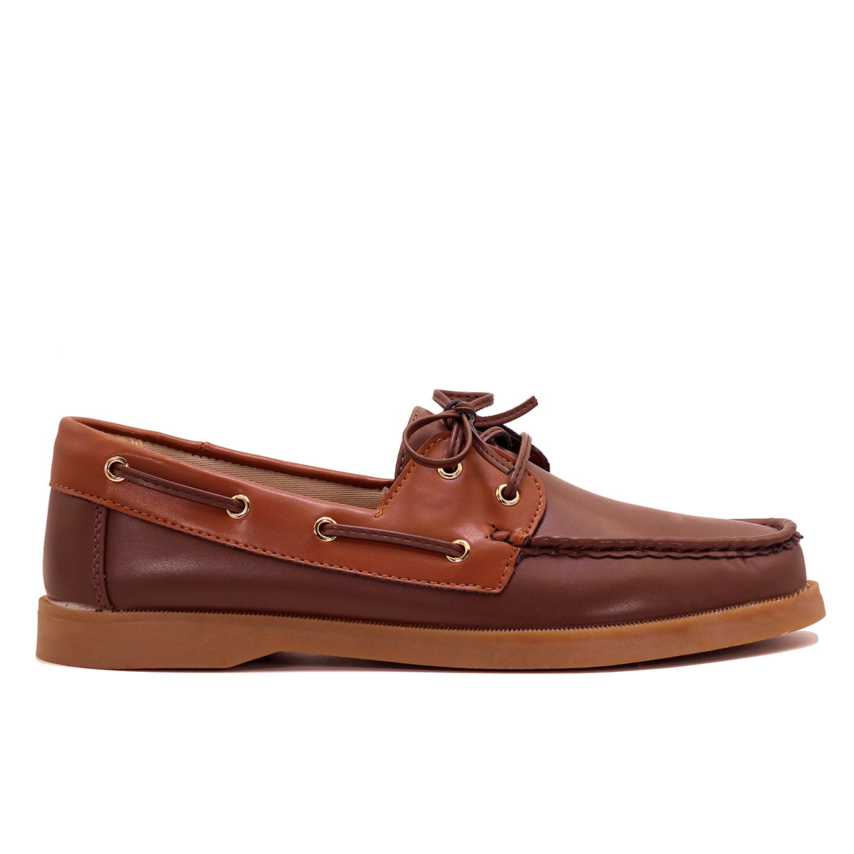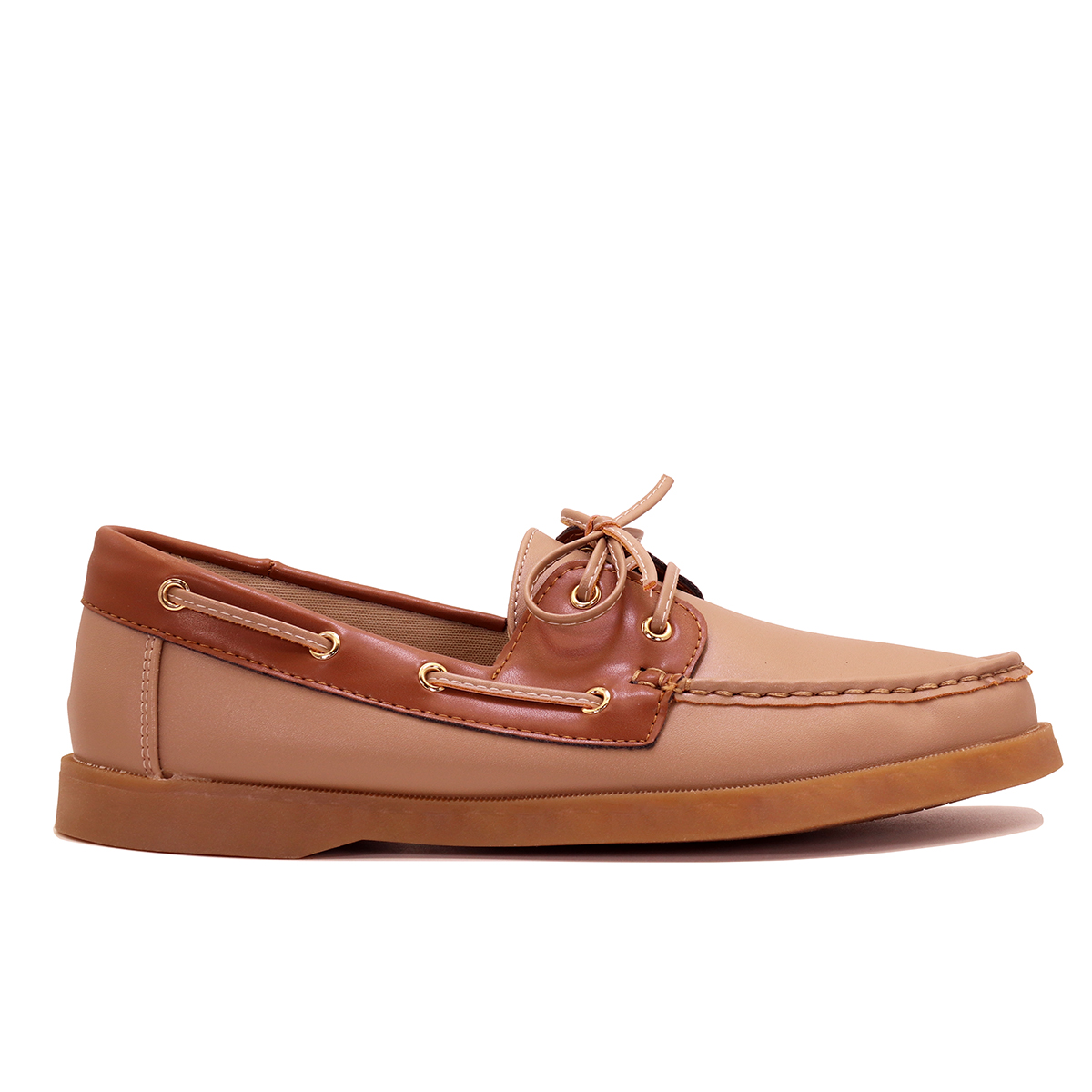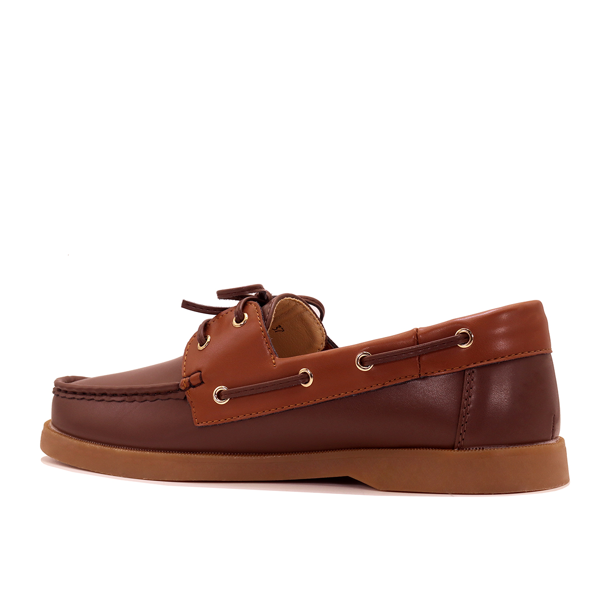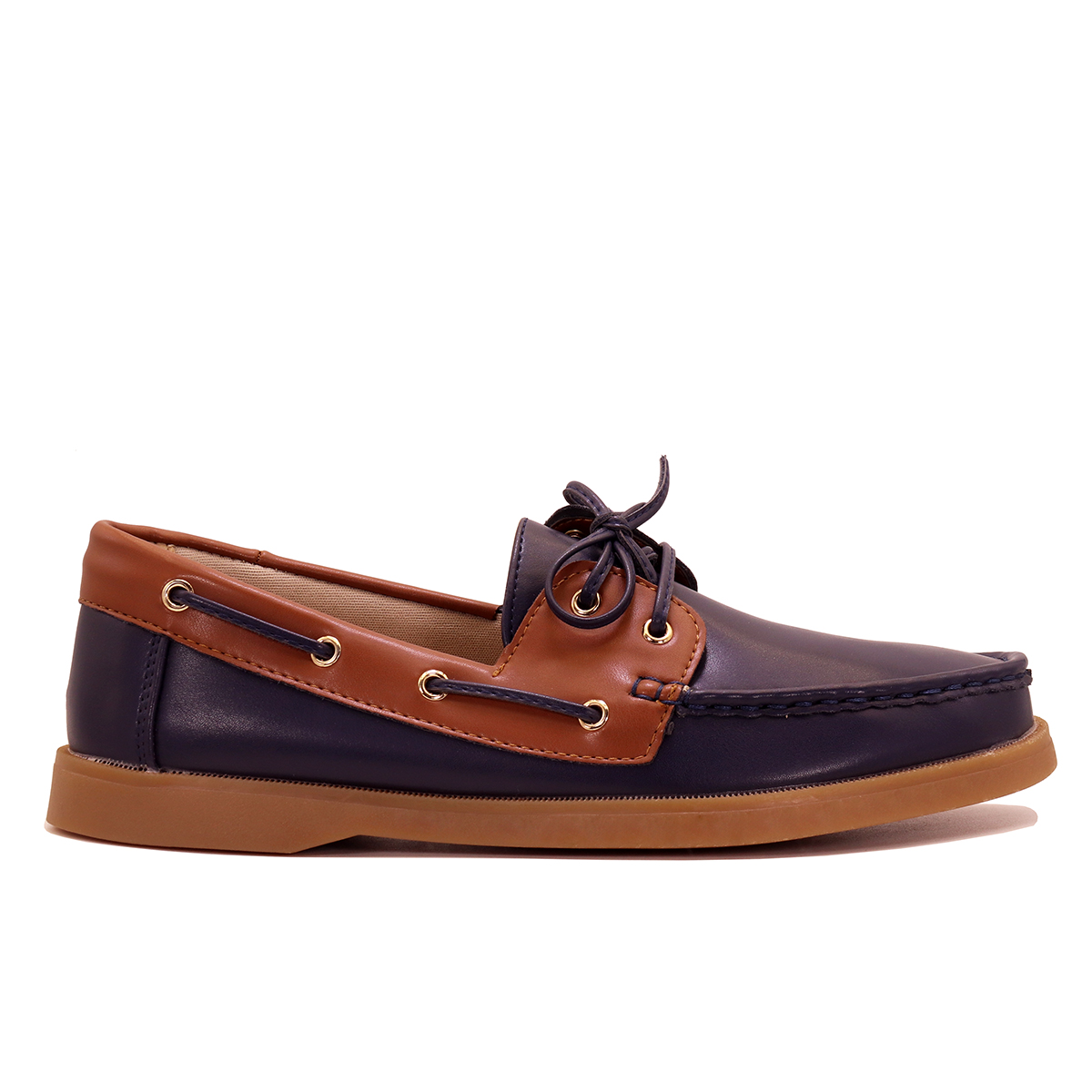 Élégance nautique et confort quotidien. Ce mocassin bateau bicolore revisite un grand classique avec ses lacets décoratifs et ses œillets dorés. Sa semelle souple assure une marche fluide, idéale pour un style casual chic toute la journée.