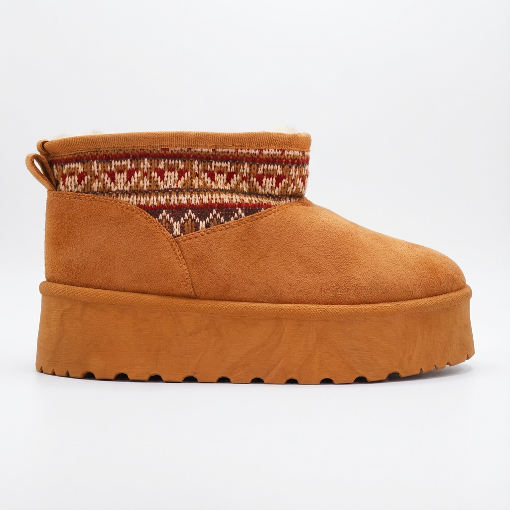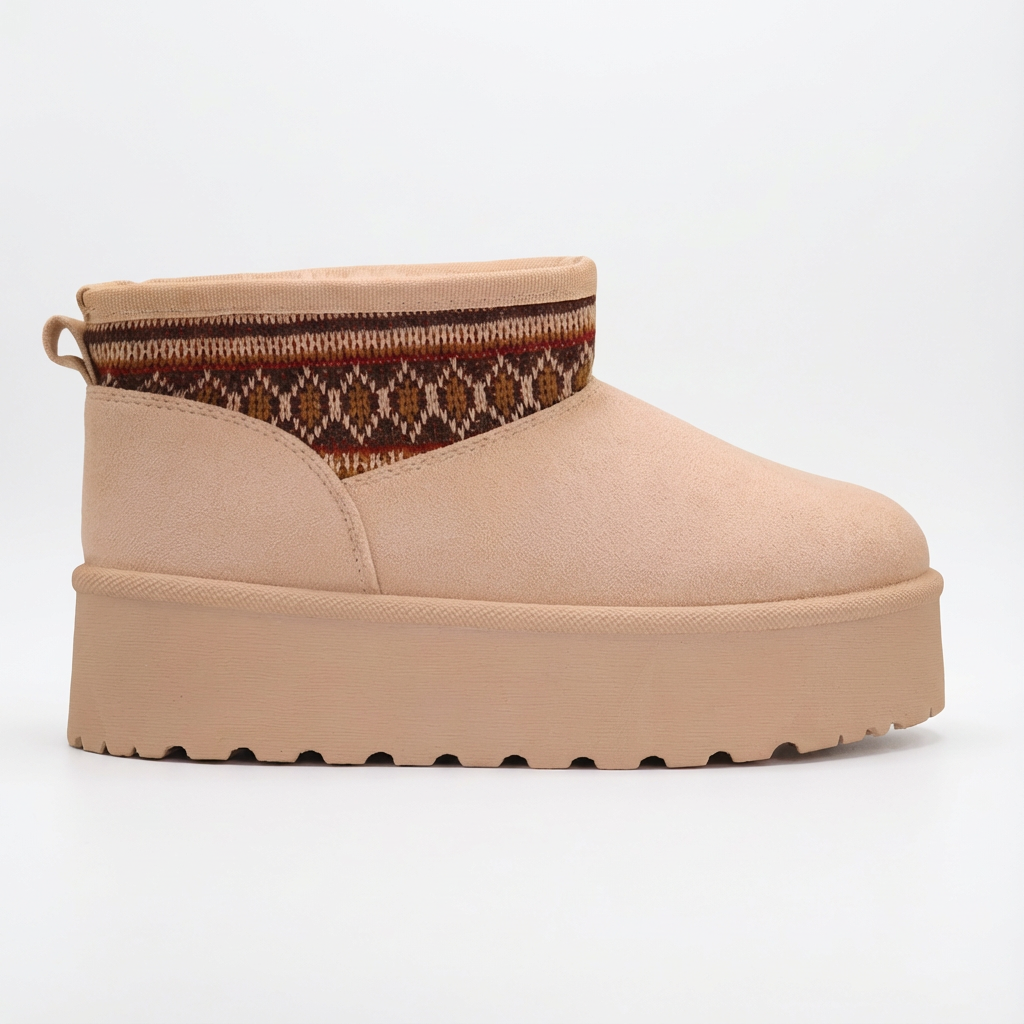 Adoptez le look le plus tendance de la saison avec nos Uggs à plateforme ! Leur semelle épaisse et crantée vous assure une allure audacieuse et moderne, tandis que leur intérieur entièrement fourré promet une chaleur et un confort inégalés. Le détail qui fait toute la différence : un col en maille aux motifs ethniques qui apporte une touche bohème-chic unique. Parfaites pour rehausser un simple jean ou compléter une tenue d’hiver.